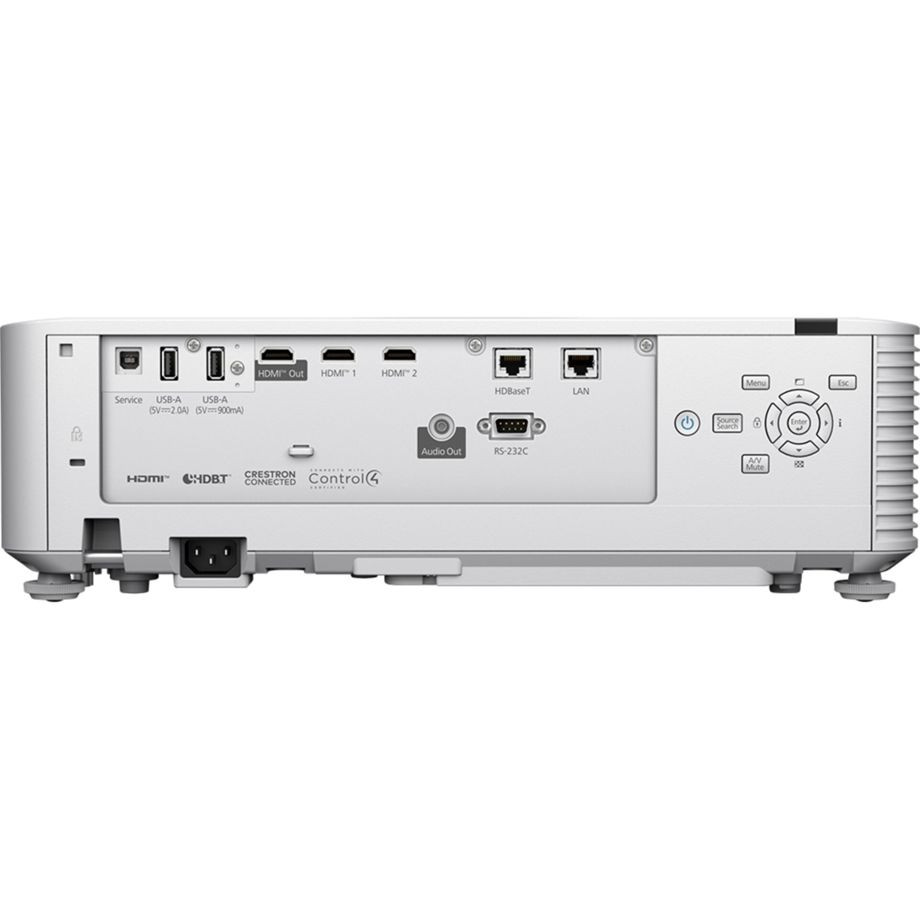 Kapcsolódás WiFi Igen Miracast (WiFi tanúsítvánnyal) Igen NFC Igen Apple AirPlay Igen Apple AirPlay 2 Igen kikötők Fejhallgató-csatlakozó Igen HDMI (A típus) Igen USB-A 2x 2.0 USB-B 1x USB-B 2.0 Hálózat (RJ 45) Igen Soros port (RS-232) 1x Felszerelés Nagy dinamikatartomány (HDR) Igen Integrált médialejátszó Nem Integrált hangszóró Igen Hangszóró névleges teljesítménye (watt) 2x 10 Belső memória Nem Távirányító Igen 3D vetítési technika 3D vetítés Nem Energiaellátás Energiaellátás Főételek Energiafogyasztás Lámpa energiafogyasztása (watt) 336 Max. energiafogyasztás (watt) 399 Min. energiafogyasztás (watt) 233 Max. izzó élettartama (óra) 30000 Izzó minimális élettartama (óra) 20000 Max. zajkibocsátás (dB(A)) 32 Minimális zajkibocsátás (dB(A)) 25 Lencse Fókusz Manuálisan Zoomolás Manuálisan Nagyítás (x) 1,6 Digitális fókusztávolság (mm) 20 - 31,8 Keystone korrekció Igen Technológia Vetítési technika 3LCD Fényforrás Lézer Natív felbontás (pixel) WUXGA (1920 x 1200) Natív képarány 16:10 Kép fényereje (ISO lumen) 6500 Max. képfényerő (ISO lumen) 6500 Min. képfényerő (ISO lumen) 4550 Kontrasztarány (x:1) 5000000 Vetési arány (x:1) 1,35 - 2,20 Max. átlós képernyőméret (méter) 12,7 Minimális átlós képernyőméret (méter) 1,27 Max. vetítési távolság lefedettség (méter) 23,8 Minimális vetítési távolság (méter) 1.4 Adaptív szinkronizáció Nem Általános Szín Fehér Szélesség (mm) 440 Magasság (mm) 138 Mélység (mm) 340 Súly (kg) 8,2 Felszerelés Állványfoglalat Nem Mennyezetre szerelhető Igen